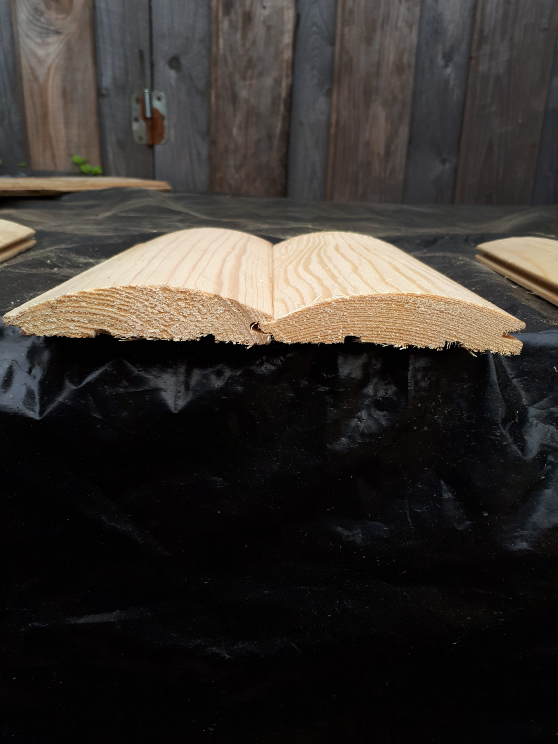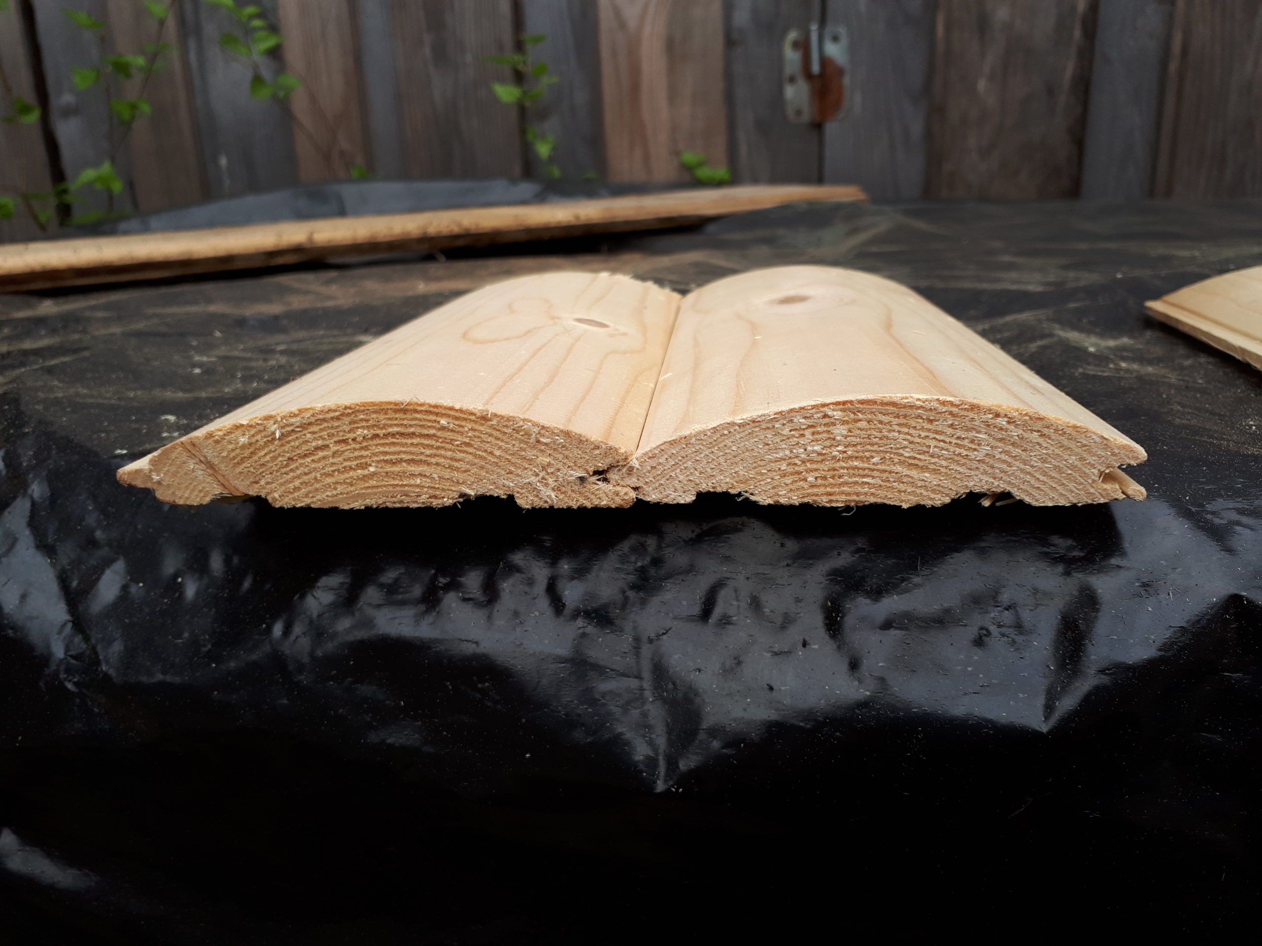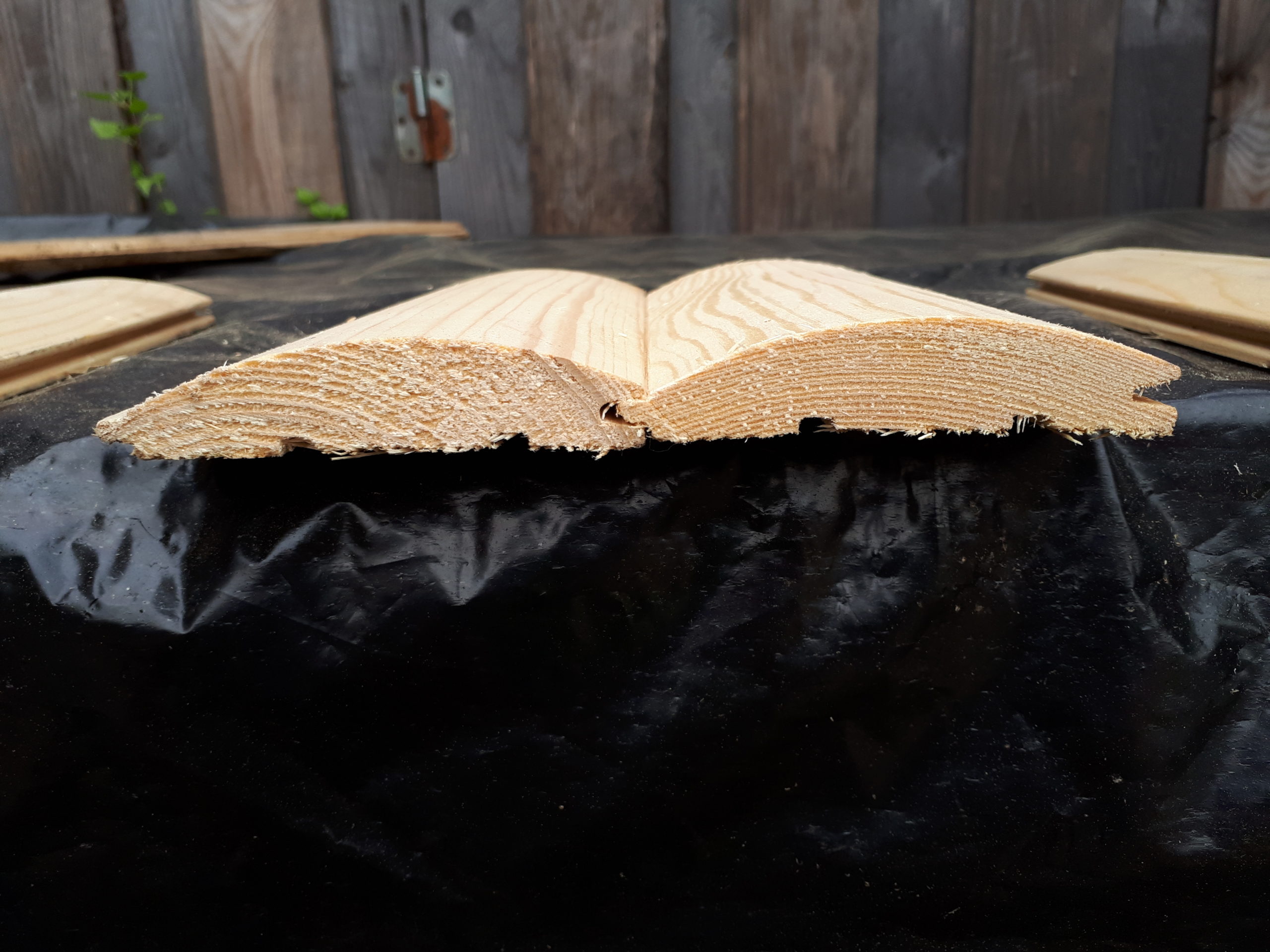 Вообще, блок хаус представляет из себя выпуклую полукругом доску с лицевой стороны и плоскую с тыльной. Для безщелевого крепления предусмотрена система шип-паз.