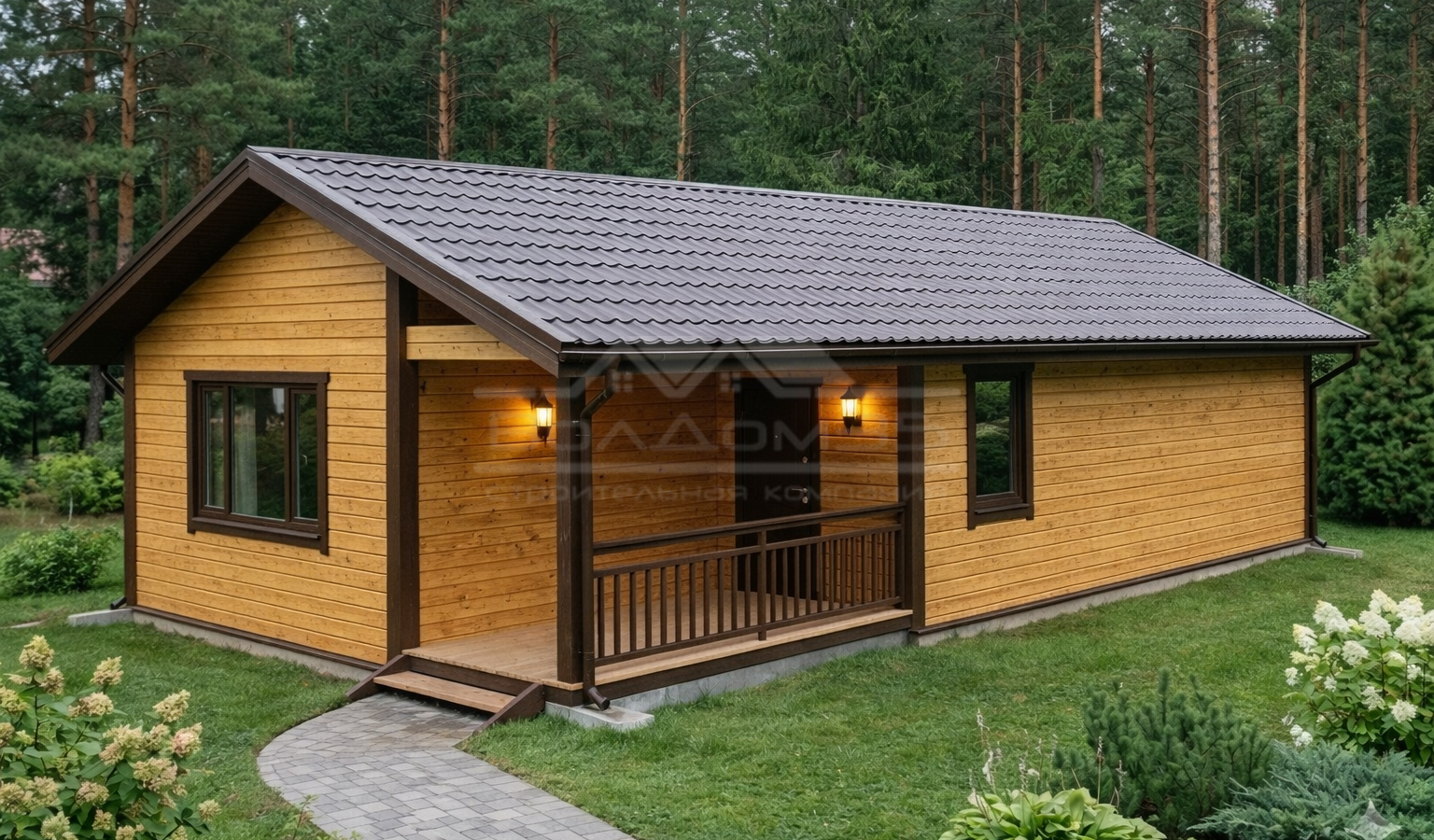Вашему вниманию предсавлен уютный дом для постоянного проживания Атум 54. Данный проект включает в себя две спальни, совмещенный санузел, прихожую, большую кухню-гостиную, а так же террасу.