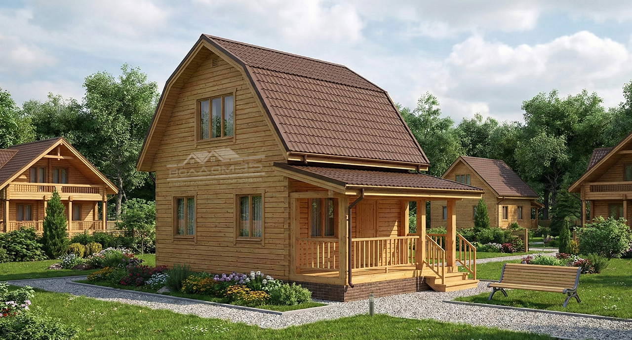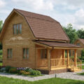 Дом с мансардой и закрытой верандой из профилированного бруса размерами 5х6м.
