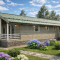 Вашему вниманию предсавлен современный дом для постоянного проживания Гармоника 99. Данный проект включает в себя две спальни, совмещенный санузел, прихожую, большую кухню-гостиную на 24 м2, а так же терасу и крыльцо.