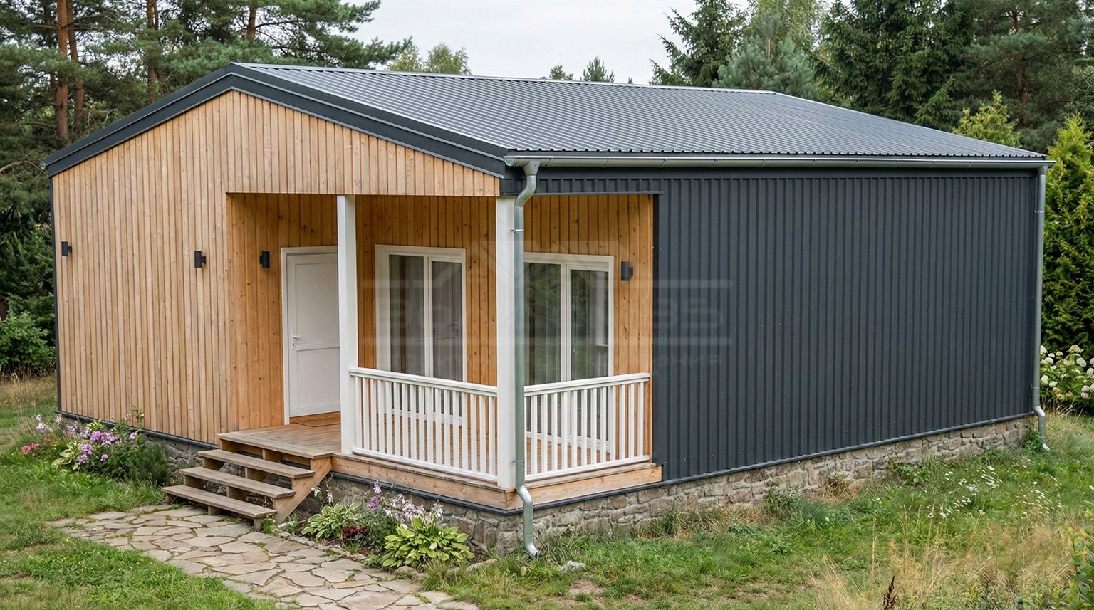 Вашему вниманию предсавлен современный дом для постоянного проживания Сферика 100. Данный проект включает в себя три спальни, раздельные туалет и ванную, котельную, прихожую, большую кухню-гостиную на почти 27 м2, а так же террасу.