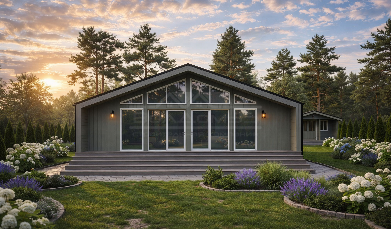Вашему вниманию предсавлен компактный дом в современном стиле. Данный проект включает в себя две спальни, совмещенный санузел, холл и большую кухню-гостиную на 24 м2. Дом пригоден для круглогодичного проживания.