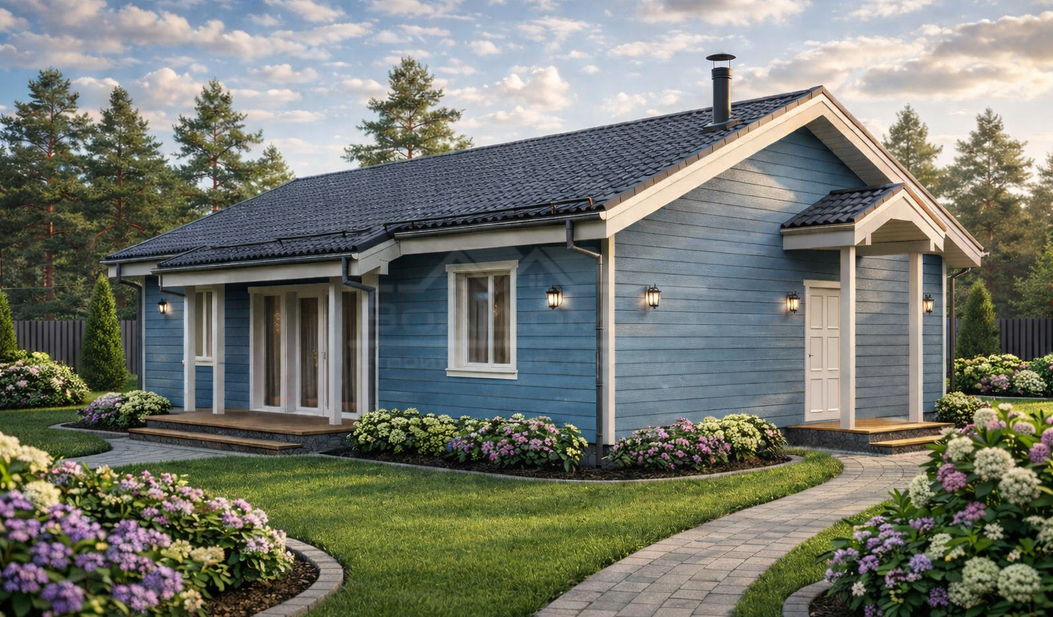 Вашему вниманию предсавлен современный и продуманный дом для постоянного проживания Виргина 113. Данный проект включает в себя три спальни, два санузла, котельную, прихожую и большую кухню-гостиную на 23 м2, а так же террасу и крыльцо.
