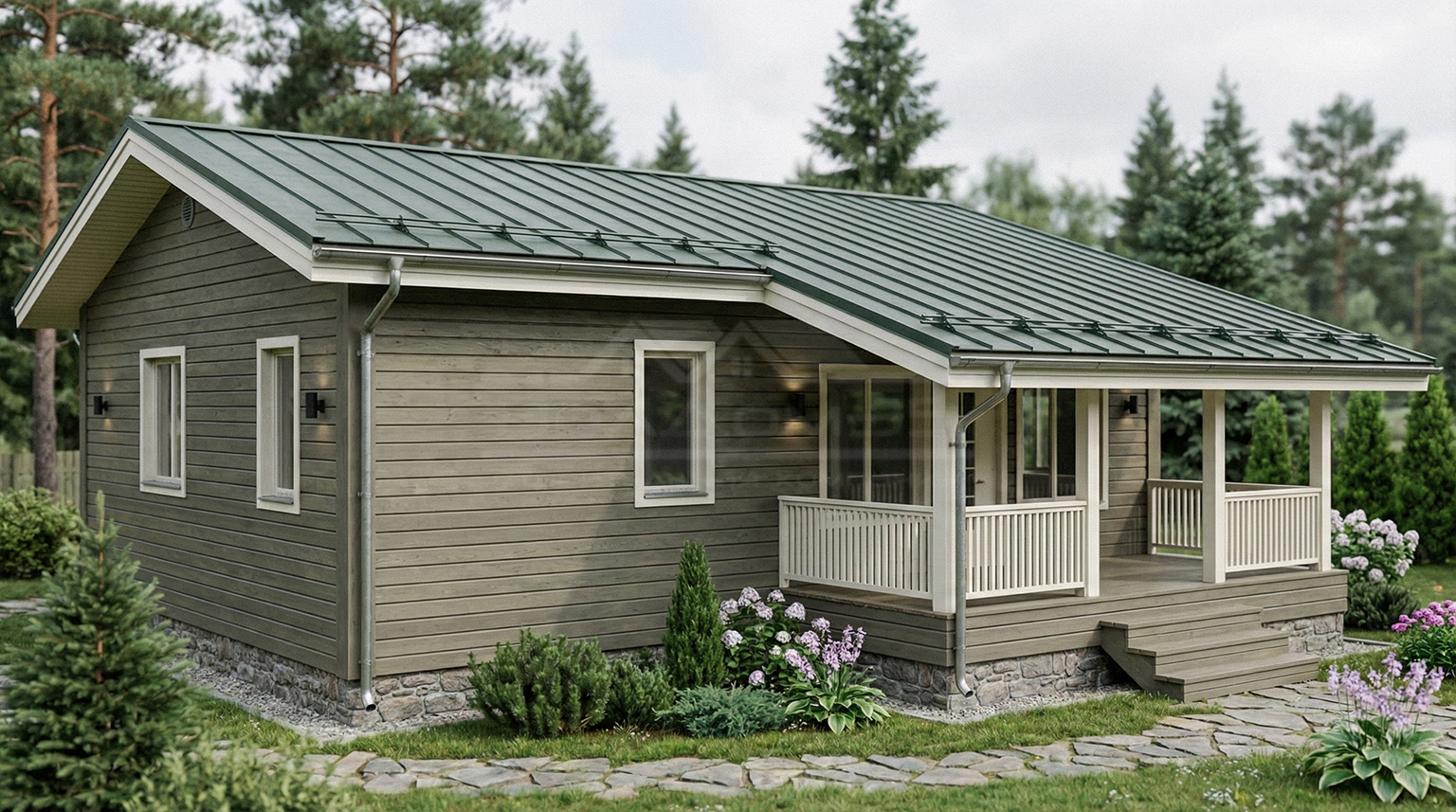 Вашему вниманию предсавлен удобный и современный дом для постоянного проживания Виветта 100. Данный проект включает в себя три комнаты, совмещенный санузел, котельную, прихожую, коридор, большую кухню-гостиную, а так же террасу и крыльцо.