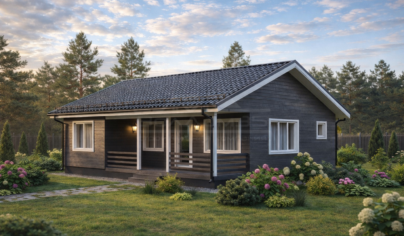 Вашему вниманию предсавлен дом-сауну для постоянного проживания Вивиана 90. Данный проект включает в себя спальню, совмещенный санузел, прихожую, котельную, кухню-гостиную на 27м2, террасу, а так же саунный блок: раздевулку, душевую и парилку.