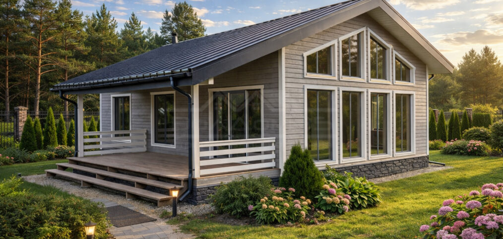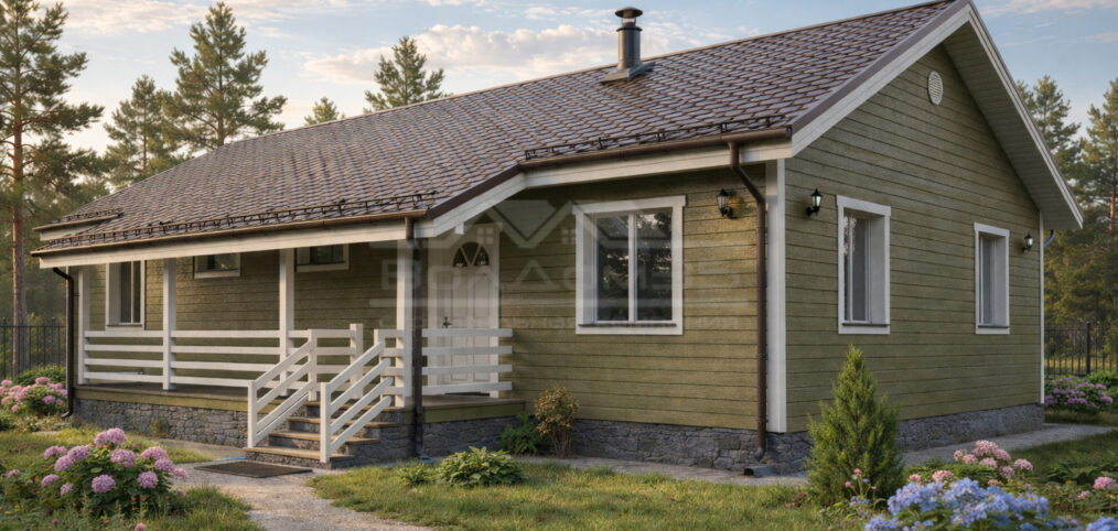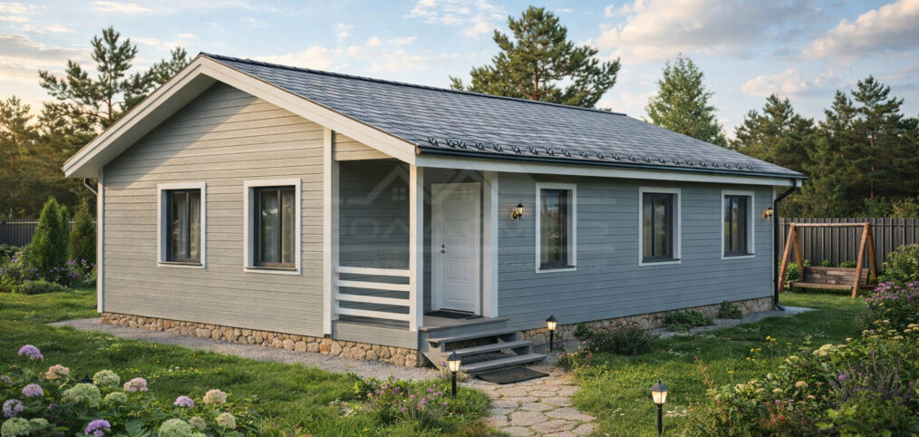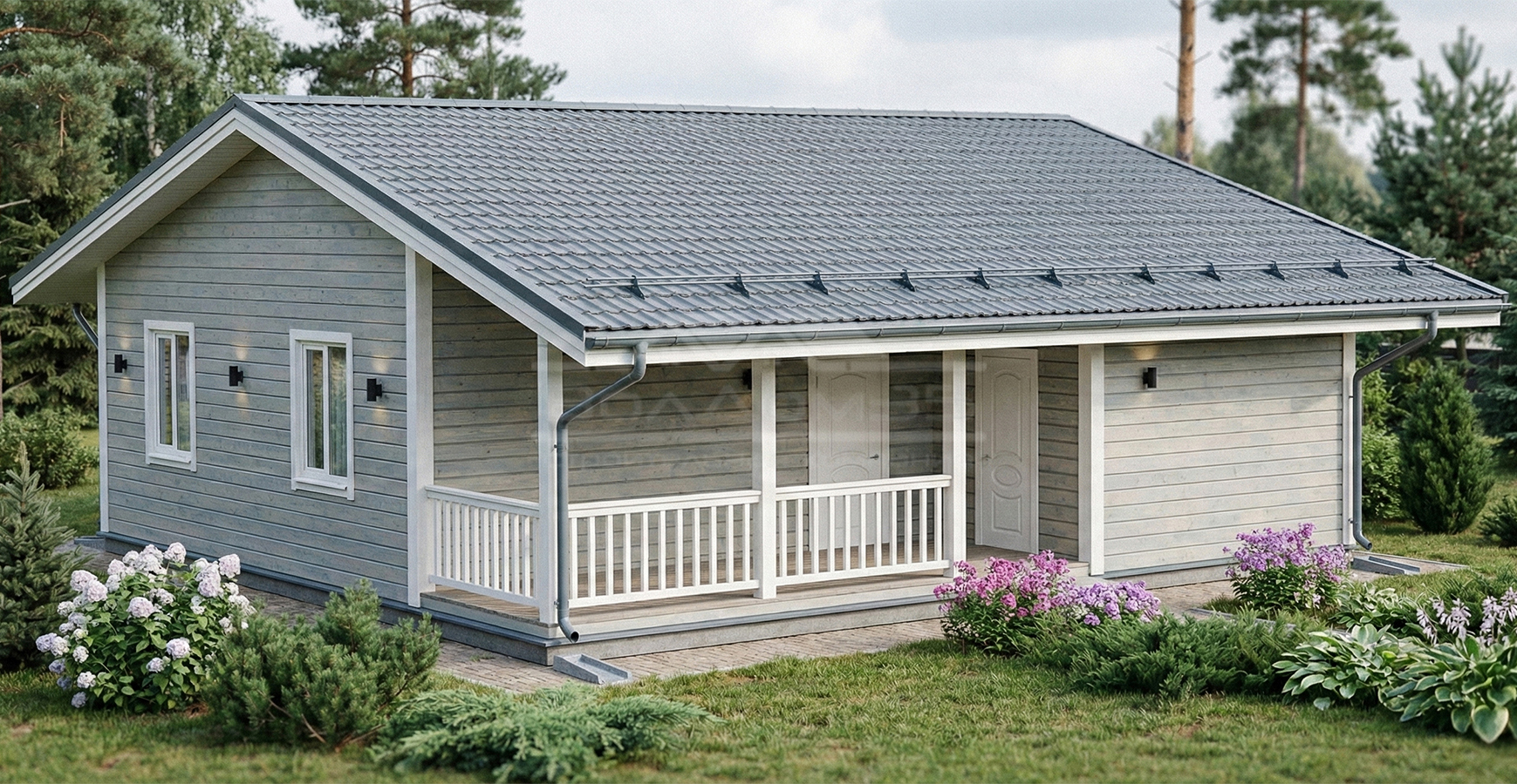 Вашему вниманию предсавлен уютный дом для постоянного проживания Атум 54. Данный проект включает в себя две спальни, совмещенный санузел, прихожую, большую кухню-гостиную, а так же террасу.